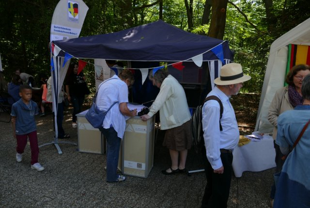 Bei strahlendem Sonnenschein präsentierte sich die Deutsch-Französische Gesellschaft mit einem Stand beim Turmfest am Spiegelslustturm. Sehr interessante Begegnungen und Gespräche trugen dazu bei, neue Freundschaften zu schließen, Zusammenarbeiten zu vereinbaren und insgesamt einen sehr gelungenen Tag in ungezwungener Atmosphäre zu erleben.