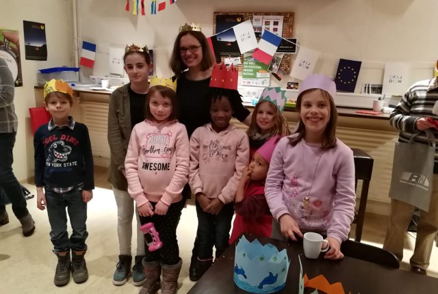 Zum dritten Mal feierten wir die Deutsch-Französische Freundschaft im Jugendcafé der Gemeinde St. Peter und Paul zu Marburg, mit dem traditionellen Dreikönigskuchen (Galette des Rois). Die Kinder bastelten und bemalten die dazu passenden Kronen aus Papier.