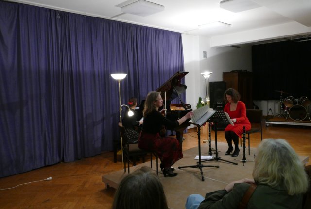 Als die Vizepräsidentin Marie-Hélène Borscheid den drei Damen im Namen aller mit kleinen Gastgeschenken unserer Bewunderung Ausdruck verlieh, sprang erneut der Funke zwischen Trio und Publikum über.