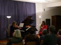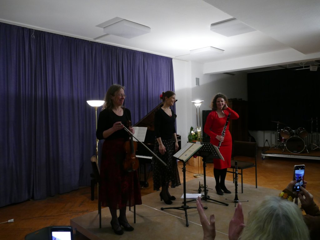 Die drei Musikerinnen des Trio Kantara, Sida Bessaih (Klarinette), Christine Roman (Violine) und Florence Jacquin-Ribot am Piano, präsentierten uns ihre brillanten Interpretationen der Werke von Walthew, Debussy, Dvorak, Brahms, Priolo, Strawinski und Piazzolla.
