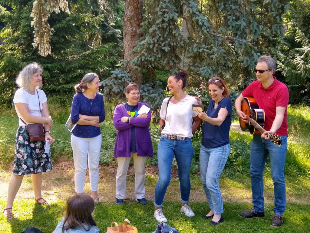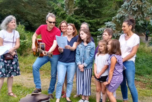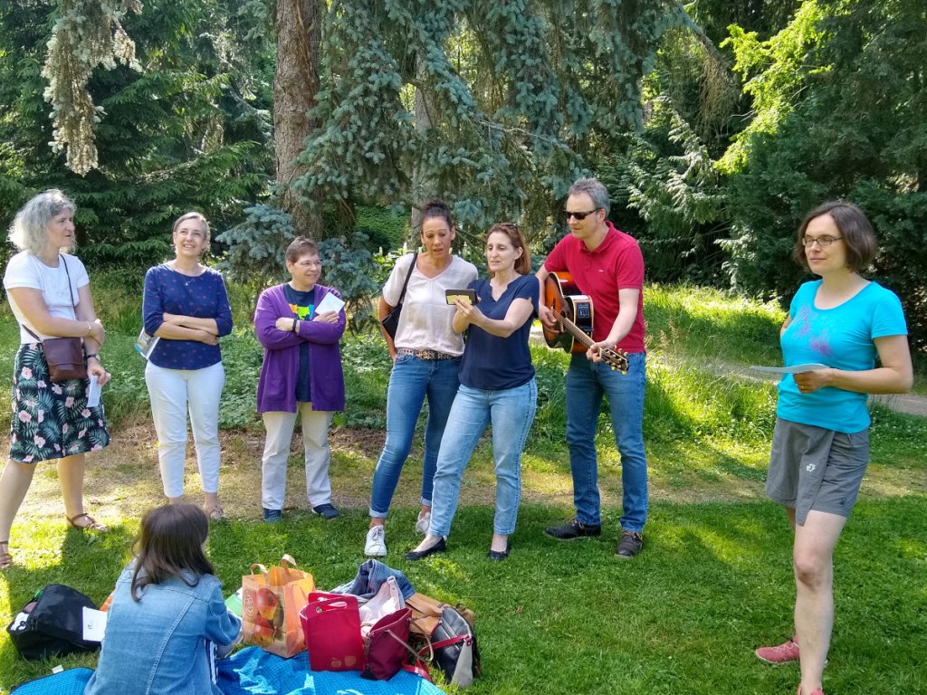 Zum ersten Mal feierten wir in Marburg das Fest der Musik. Wir trafen uns im Alten Botanischen Garten und sangen einige französische Lieder, begleitet von Robert an der Gitarre. Vielen Dank an Florence und Robert!