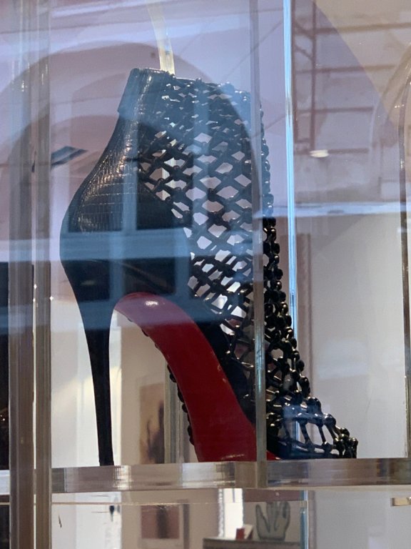 Im 19.Jahrhundert, dank der neuen Eisenträgerkonstruktionen, waren Bequemlichkeit und Geschäftssinn Motor einer praktischen Erfindung. Man begann kleine Ladenstraßen mit Glasdächern und -kuppeln zu überbauen, um trockenen Fußes die Kutschen am jeweiligen Ausgang zu erreichen. Auch wir sehen uns satt an attraktiven Auslagen, die Martine Faber eigens für uns ausgesucht hat. Jede Passage, eine kleine Handelsader, aber auch Abkürzung zwischen den Boulevards, punktet mit einer Besonderheit, sei es der Belle Epoque, dem Empire, kunstvollen Mosaikböden oder Marmorfliesen. Luxusmarken, Ateliers, Cafés, Varietés, Boutiquen, Feinkostläden zeugen von geschäftstüchtigem Elan. Etwas für Liebhaber ausgefallener Kleinigkeiten, aber auch für die prallere Brieftasche. Damen kaufen hier bei Louboutin die sexy Heels mit roter Sohle.