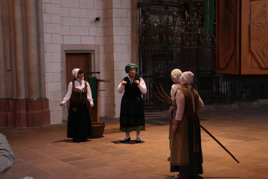 Die Vernissage am 12 Juni 2024 enthielt auch ein kleines Theaterstück, gespielt von den Gastführern der Stadt Marburg.