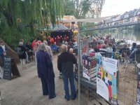 Direkt am Ufer der Lahn, im Marburger Ufercafé spielten Juliette Brousset, Georg Bauss und Dirk Kunz ein Konzert (Titel: En Chansons) mit Re-Interpretationen französischer Chansons, quer durch die letzten 60 Jahre mit vielen bekannten Hits.